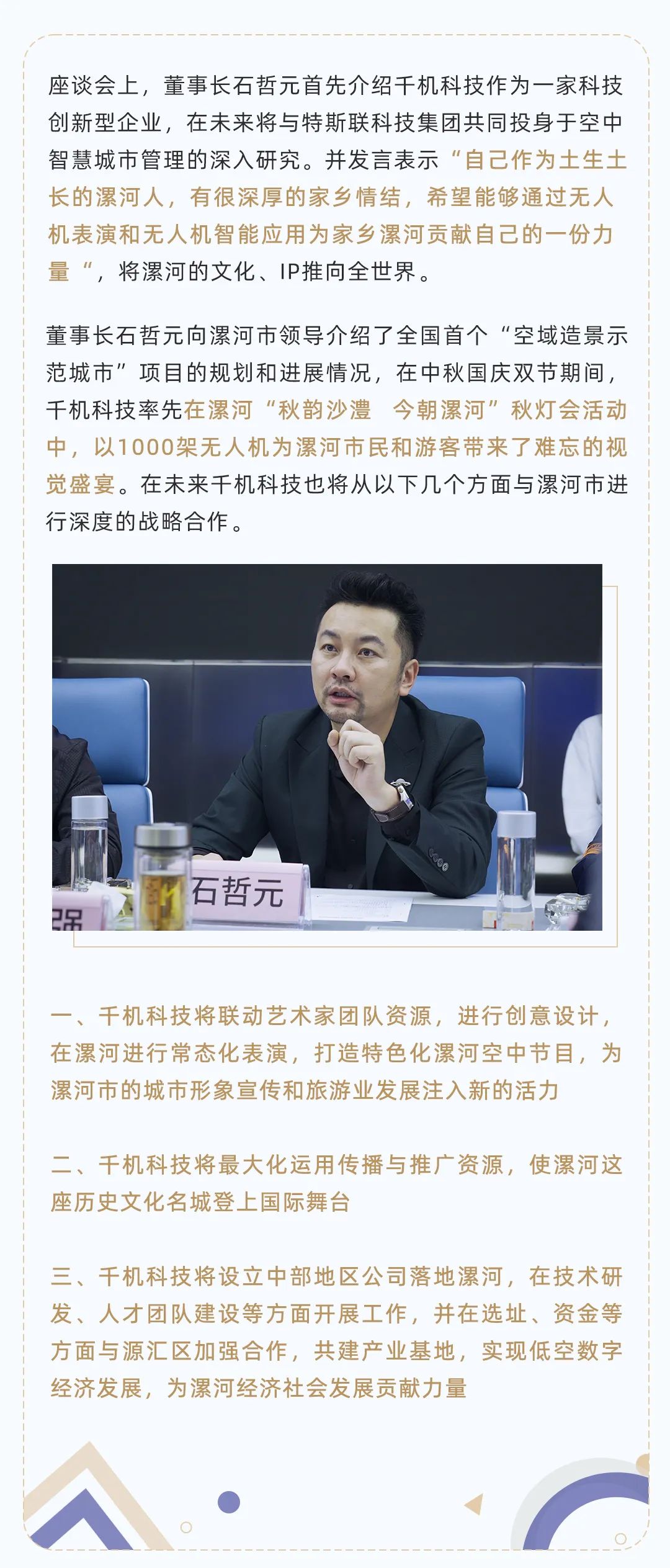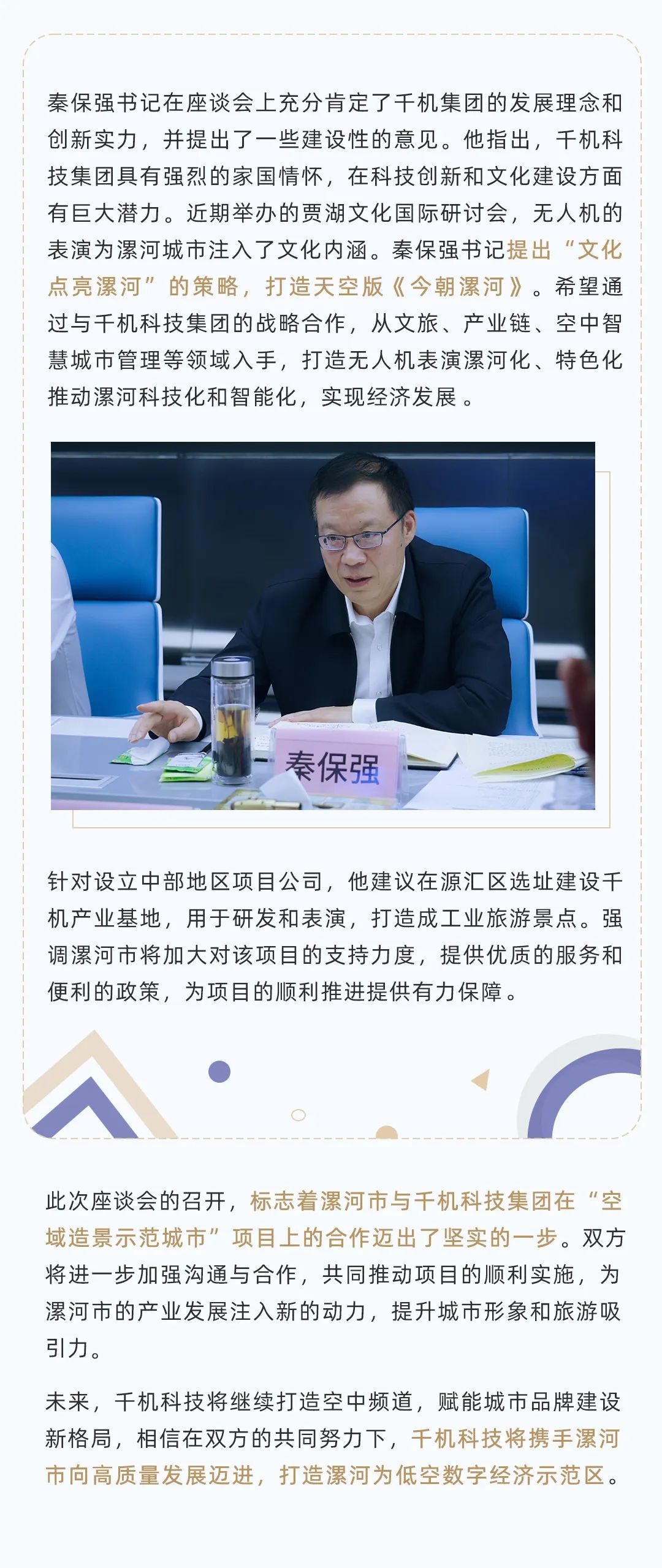 漯河市市委书记秦保强等一行领导走访调研千机科技集团,探讨打造全国首个“空域造景示范城市”