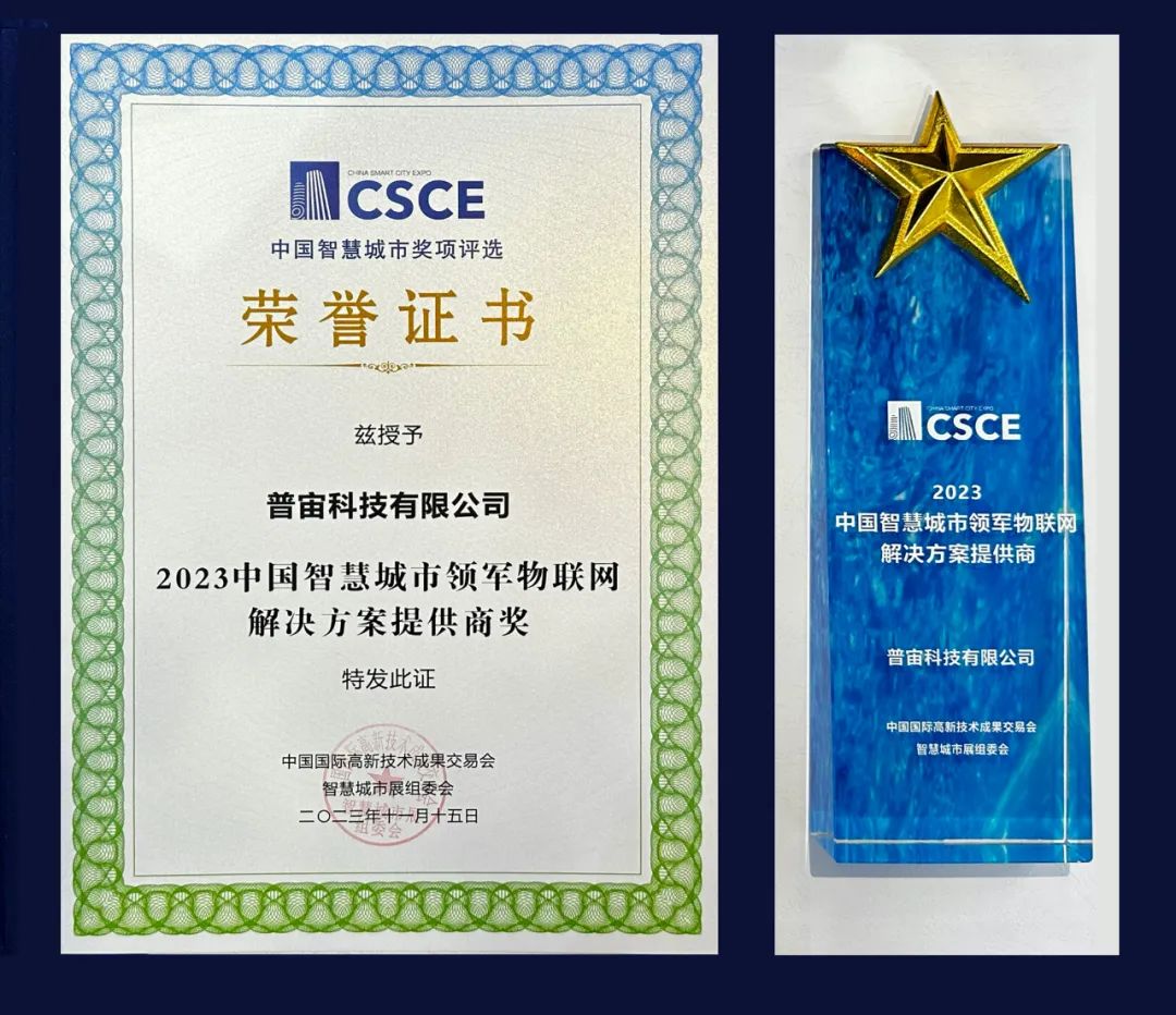 凭借近年来在智慧城市建设领域的优秀成果和卓越贡献,普宙科技荣获“2023中国智慧城市领军物联网解决方案提供商”殊荣,并受邀出席2023年度中国智慧城市奖项评选颁奖典礼。