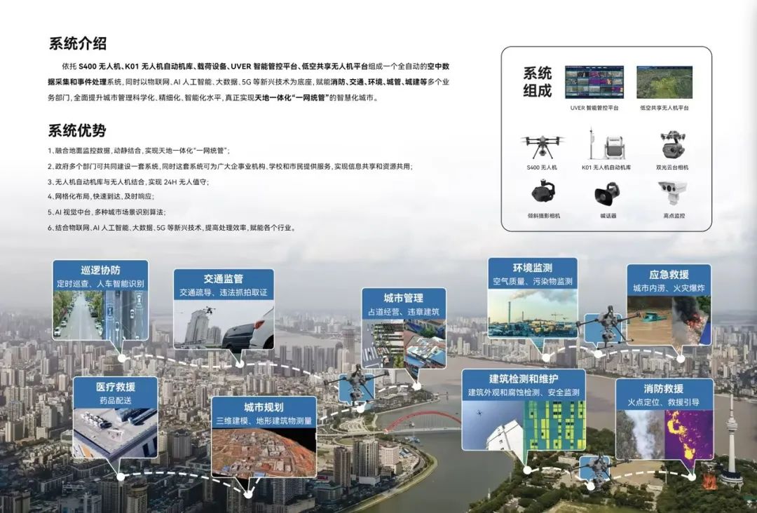 图丨普宙科技“天地一体化”智慧城市解决方案亮相本次高交会的是普宙科技的旗舰之作S400无人机、K01无人机自动机库以及全系列智能载荷矩阵,面向日趋精细化的城市管理需求,普宙科技积极探索无人机对接数字化应用创新模式,依托S400无人机、K01自动机库、载荷设备、UVER智能管控平台、低空共享无人机平台构建出全自动的空中事件采集和事件处理系统,同时以物联网、AI算法识别、大数据、5G等新兴技术为底座,赋能消防、交通、环境、城管、城建等多个业务部门,全面提升城市管理科学化、精细化、智能化水平,真正实现天地一体化“一网统管”的智慧化城市。