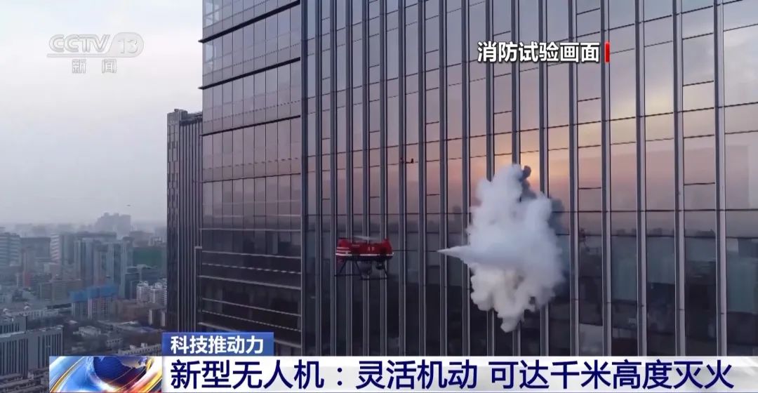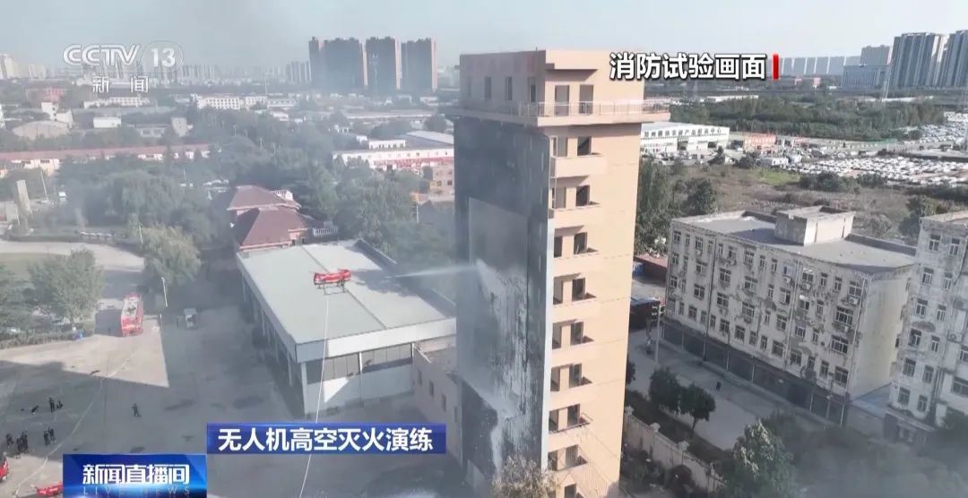 应急管理部火灾事故原因调查专家 张万民:这款装备消防局正在组织开展试点应用示范项目,从未来的角度上讲,加上举高消防车,加上无人机,两种技术手段的结合,可以满足现有高层建筑室外空间灭火技术的要求。
