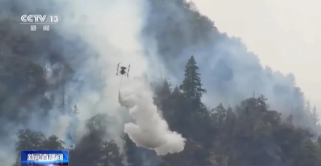 遇到森林火灾,无人机也是灭火利器。今年4月,四川甘孜稻城突发森林火灾,火场峭壁林立,植被茂密,大火在悬崖处燃烧蔓延,扑火队员很难快速抵达。消防救援人员操作消防工业无人机,搭载干粉灭火罐迅速起飞,抵达火场上方,喷洒干粉快速控制火势,实现安全高效灭火。