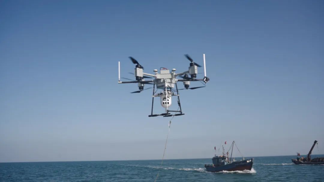 近日,在某次海上演练中,系留无人机XCD-45A挂载吊舱在海上动平台起降,以17节速度随船飞行,充分展示了优异的产品性能。