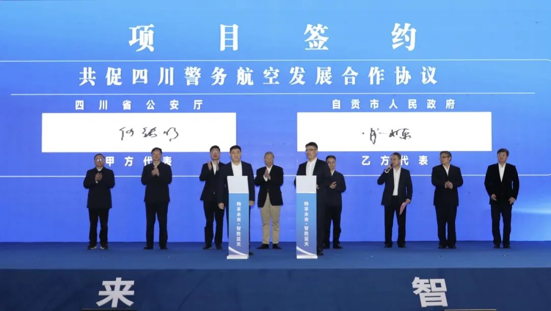 在开幕式上,四川省公安厅副厅长何绍明和自贡市人民政府常务副市长肖冰东签订了共促四川警务航空发展合作协议。与此同时,四川警察学院、自贡市公安局、自贡航空产业园区管委会也签订了三方战略合作协议。