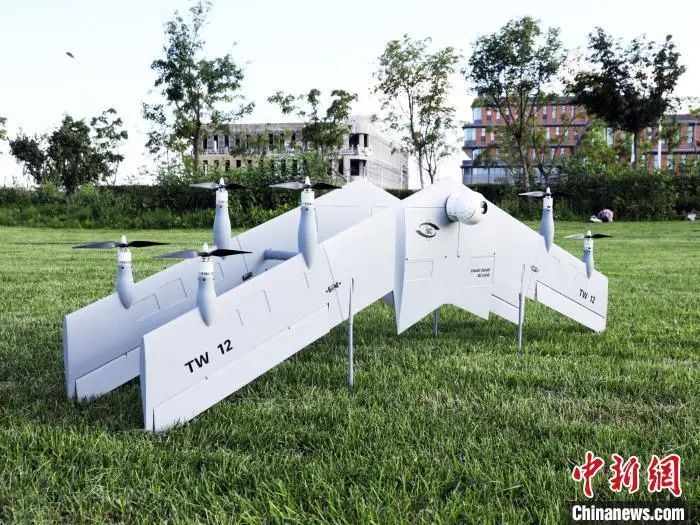 这款无人机采用全球首创的“双飞翼+多旋翼”气动布局,可实现竖直状态下的垂直起降,起飞后又可以正常平飞。它主要以新能源锂电池为动力,旋翼垂直起飞时会提供向上的抬升力,转为平飞后,旋翼则转为水平推力,如此一来,气动效率变高了,飞行时间也变长了。