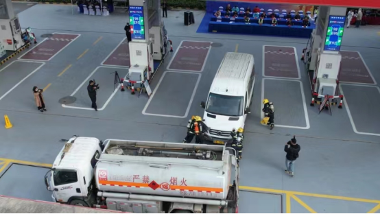 演练预设了一辆中巴与正在卸油的油罐车相撞,设置了信息报告、会商研判、应急处置、紧急破拆救援、危化品泄漏处置、应急恢复共六个环节,还原了加油站事故发生后各部门响应处置流程和救援过程。