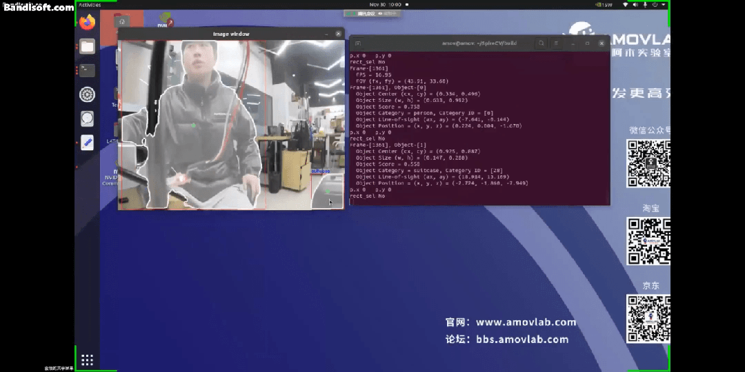 执行命令启动demo程序。通过点击鼠标左键选择目标物体并实现跟踪。