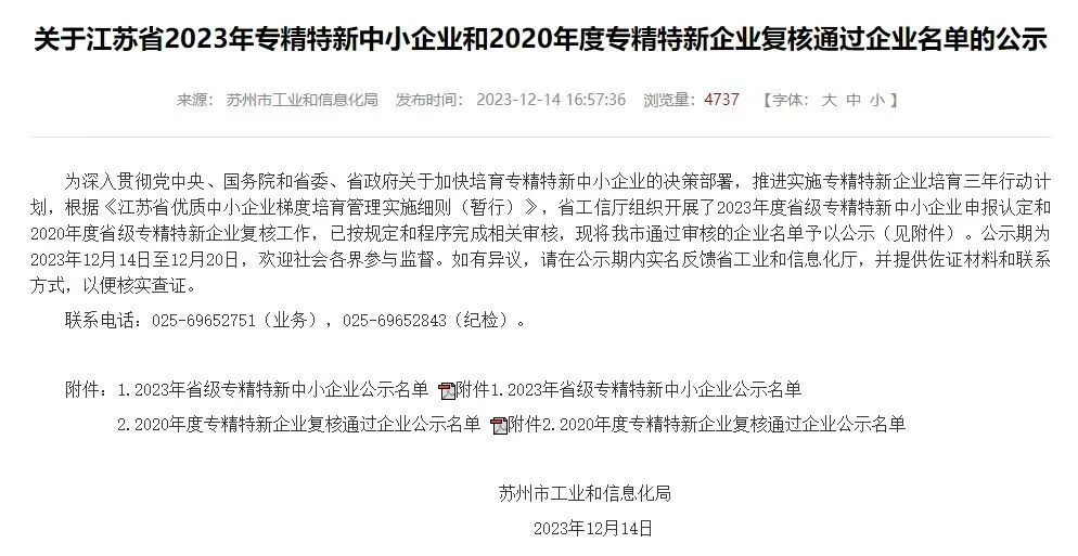 近日,苏州市工业和信息化局发布了《2023年省级专精特新中小企业公示名单》,星逻智能荣获江苏省2023年度“专精特新”中小企业称号。这是继星逻上海子公司获评之后,星逻智能苏州母公司再次获得“专精特新”荣誉称号。