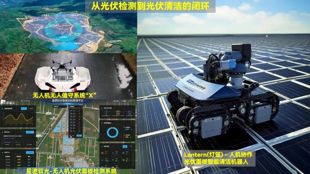 在即将推出的lantern光伏面板清洁机器人中,星逻智能将把星逻驭光的巡检结果作为清洁机器人的作业标准,代替人力对光伏面板的灰尘脏污进行清洁,从而有效提升光伏场站的清洁效率,降低场站的发电损失,减少人力资源管理的成本。
