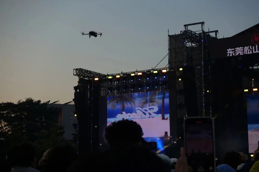 在湖Live音乐节上,周围是热情洋溢的人群,空气中弥漫着音乐的旋律和人们的欢笑声。在这个充满活力的现场,有一个安静的守护者,它就是火萤科技的Manti无人机降落伞。