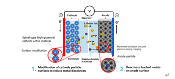 对于锂离子电池的主要市场之一的电动汽车应用,人们正在努力提高电池组电压,此举将缩短充电时间、提高车载电子设备的效率并增加电池输出。此外,更高电压的电池将减少电池模块所需的电池组数量并降低成本。镍锰氧化物(LNMO)实现了无钴、镍含量低的高电位正极,被视为未来锂离子电池正极的有力候选者。