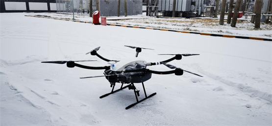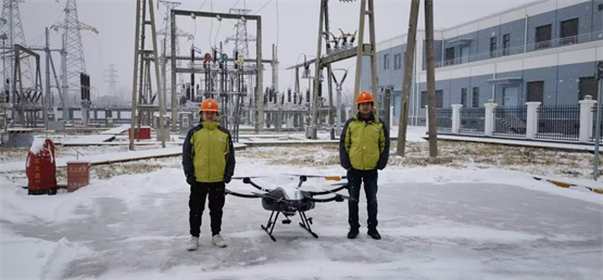近期,北京局延庆的110千伏变电站雪花簌簌,一架氢动力无人机搭载双光吊舱,随着雪花飞舞,检查变电站内覆冰、积雪和短路风险等情况。工作人员在室内平稳地操控着无人机,高效安全地完成了巡检任务。