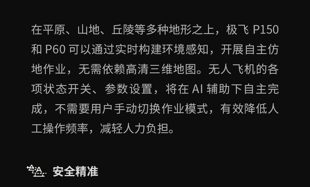 广州极飞科技股份有限公司(极飞科技)创立于 2007 年,是世界领先的机器人和人工智能技术公司,致力于用科技为农业赋能。极飞科技以“提升全球农业生产效率”为使命,通过开发无人化的农业生产方式,满足日益增长的世界人口对粮食安全的需求,为社会发展和环境保护创造积极的影响。