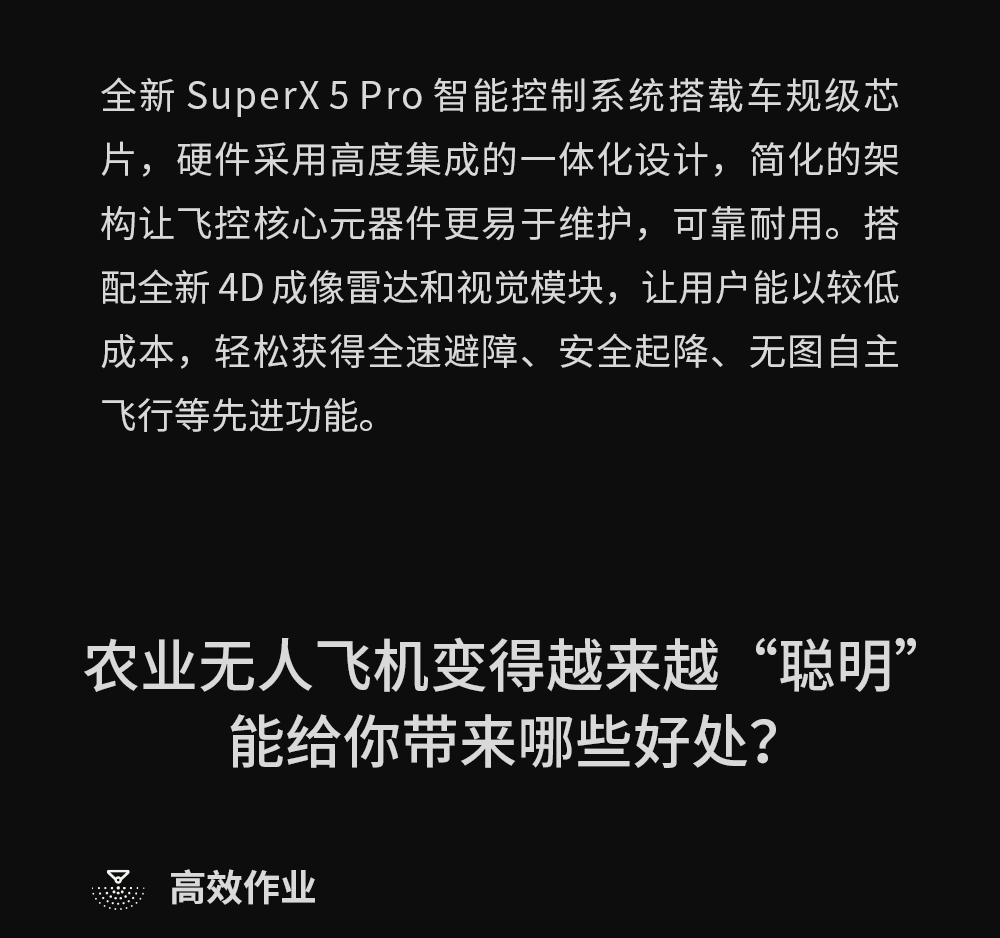 极飞的愿景是,构建一个满足人类未来 100 年发展需求的农业生态系统,让全世界的人们都能获得充足、丰富和安全的食物。成立 14 年来,极飞自主研发了农业无人机、农业无人车、农机自驾仪、农业物联网和智慧农业管理系统等产品。通过构建完善的渠道体系,为农户提供智能、高效、经济的生产工具和数据服务;帮助农场解决劳动力成本高、生产管理粗放等问题。