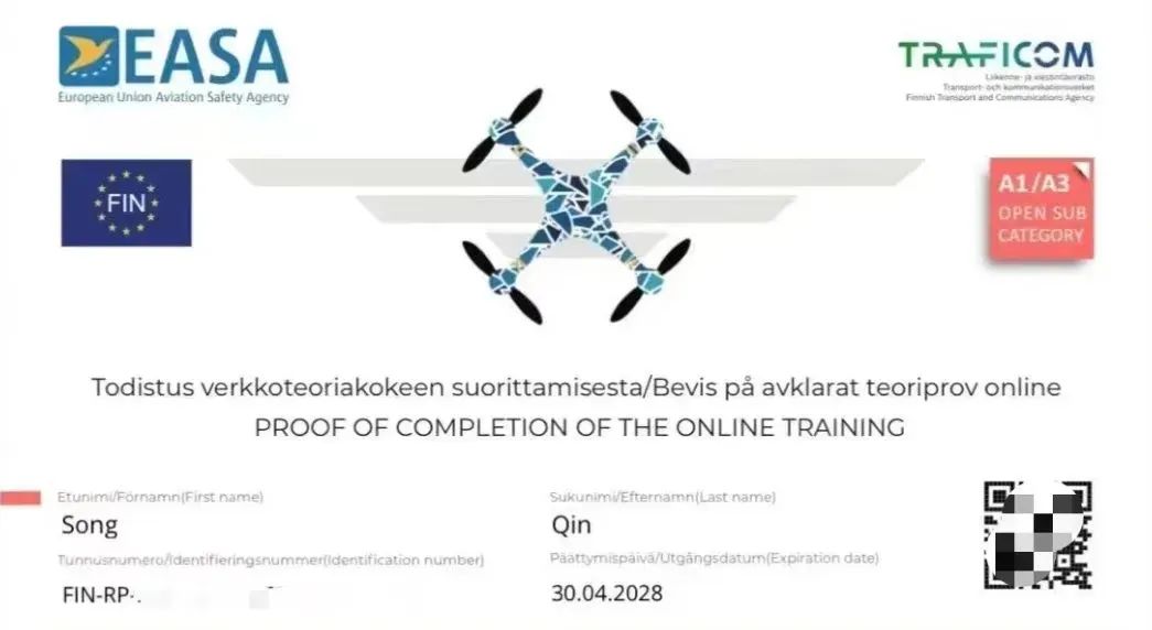 欧盟无人机证书申请费3000元/人(欧盟三十国五年有效,取得证书后退团扣全款)