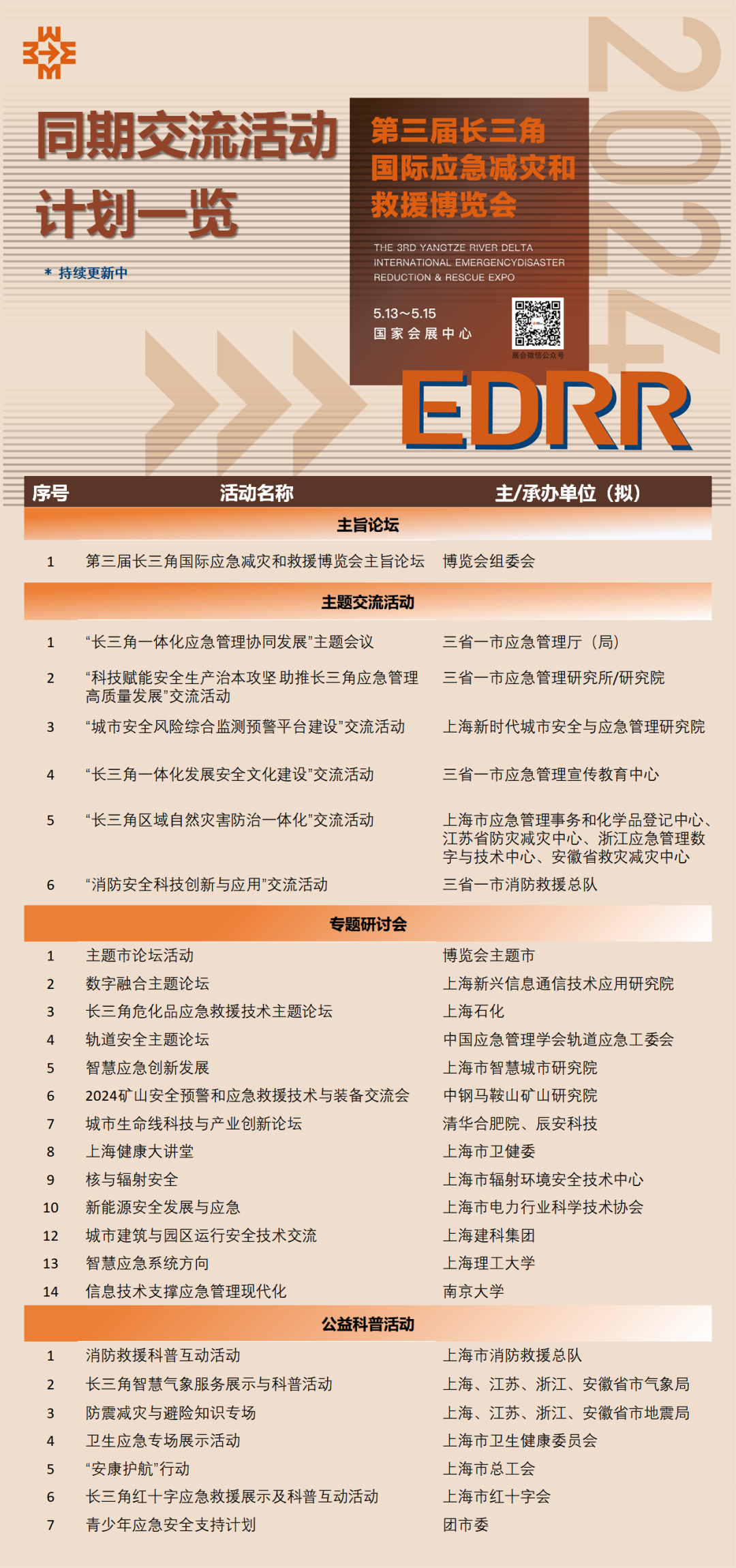 第三届长三角国际应急减灾和救援博览会吹响最强集结号!2024年5月13-15日,EDRR即将再次闪耀上海国家会展中心。