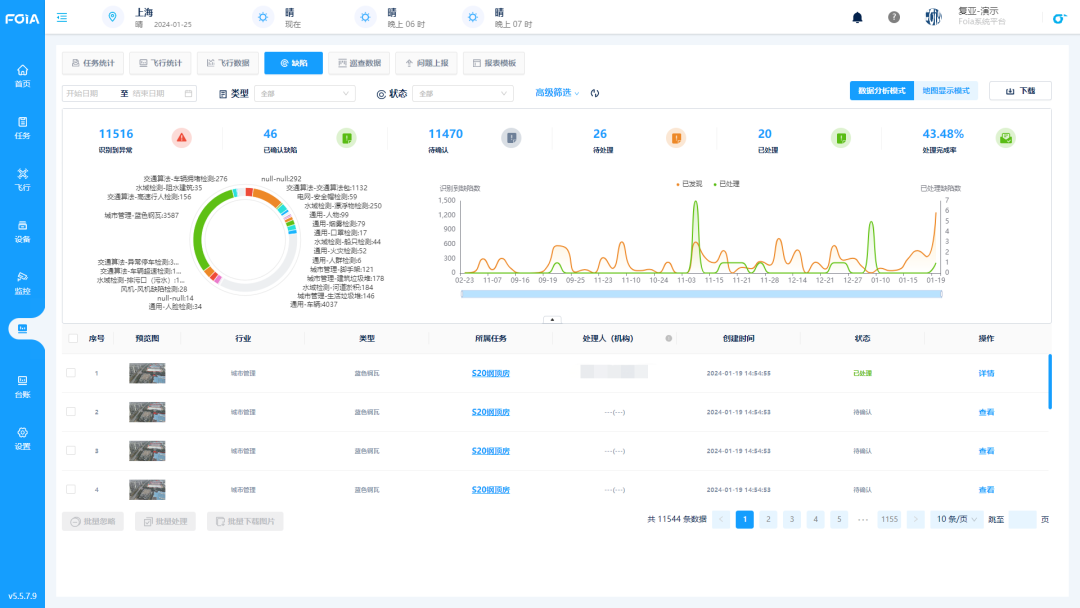 ■ 结果多维度查看:在巡视结束后,可以直观地查看缺陷识别记录,包含任务记录、识别后的缺陷图片和原始图像、详细的缺陷说明、算法识别报告、历史数据与任务概览等数十个维度结果,帮助用户全面判断,更好地理解和处理问题。