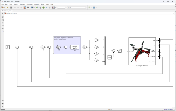 将"e6-PositionCtrlPID-Confige6.3HILPosControl_HIL.slx"模型编译完成后烧入飞控,进行硬件在环仿真, 多旋翼可以实现基本的直线飞行和悬停。