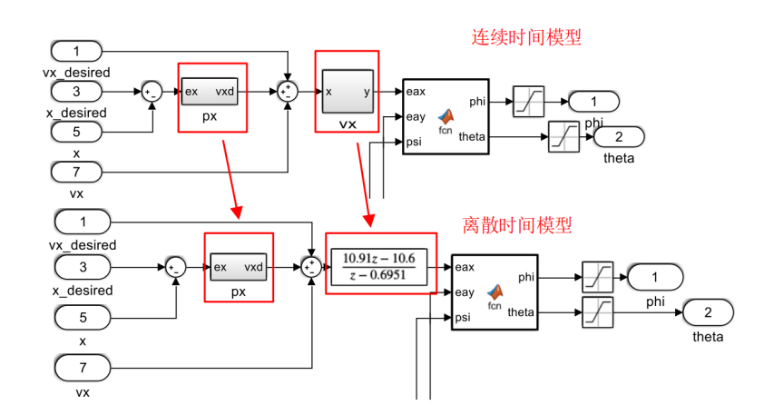 将 Simulink模型中的 PID 控制器替换成离散模块, (在"e6-PositionCtrlPID-Confige6.3HILPosControl_HIL.slx"中找到PosControl_HIL/Control System/Subsystem1/position_control子模块)如下图所示