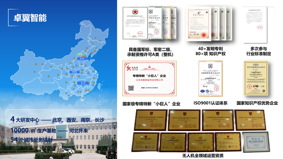 北京卓翼智能科技有限公司成立于2015年,专注于智能无人系统的研发、生产及行业应用。公司团队目前近300人左右,70%为研发人员,核心团队来自于北京航空航天大学,拥有超过10年的无人系统研发、设计、制造等核心技术经验。同时,多位北航知名教授担任公司技术顾问,在市场竞争环境中,确保卓翼智能保持持续创新的技术能力。公司在北京、西安、南京、长沙设有研发中心。