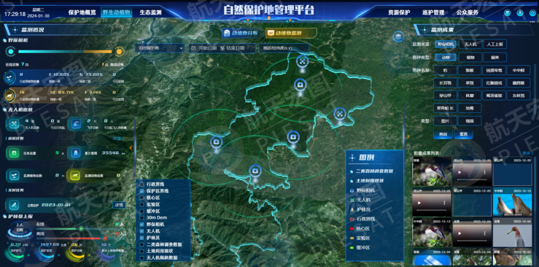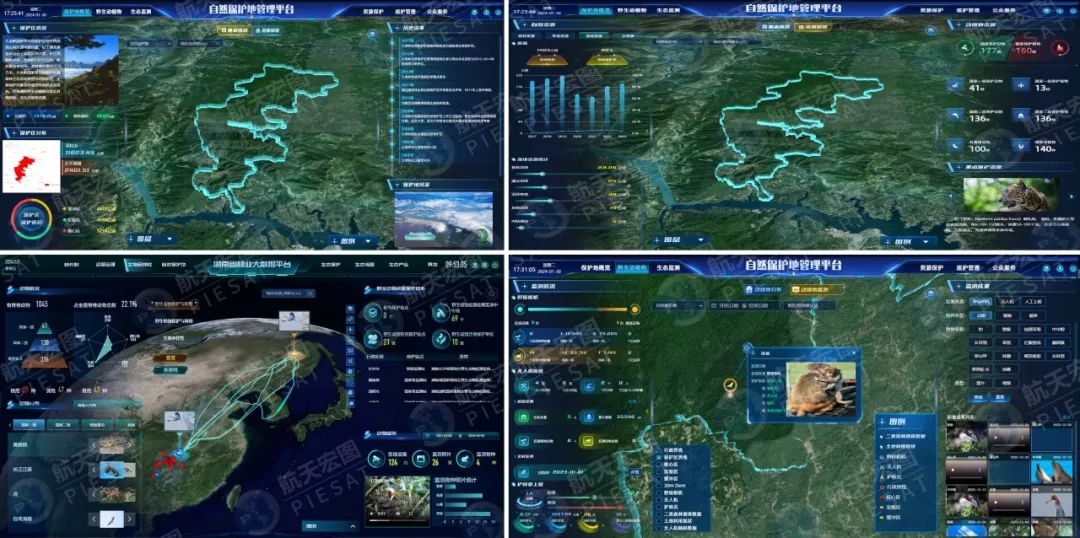 航天宏图PIE-Nature 自然保护地空天地立体监测平台,基于卫星遥感、无人机、物联感知、大模型、数字孪生等新一代数字化技术,构建信息立体感知、数据互联互通、业务综合管理、智慧分析决策的“天空地”一体化保护区监测感知体系,提高保护地森林、湿地、野生动植物等资源监测数据的汇聚、整合,为实现湿地、保护地资源监测、保护管理、科学研究、科普宣教的信息化管理,提供科技支撑。
