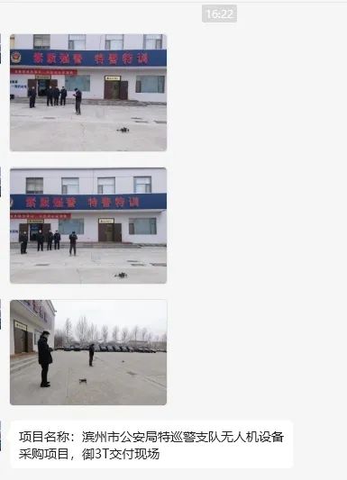 2024年2月2日:滨州市公安局特巡警支队御3T交付现场,1月中旬进行了包含:运载无人机和迷你无人机的交付,此项目落地十分迅速,基于我司和滨州特警和长期合作,和我司专业的团队。