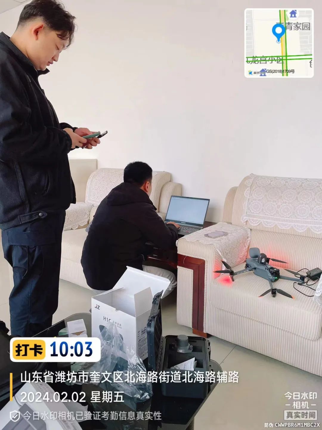 2024年2月2日:山东省潍坊市奎文区分局交付现场,节前实时交付保障春节期间无人机巡查使用。