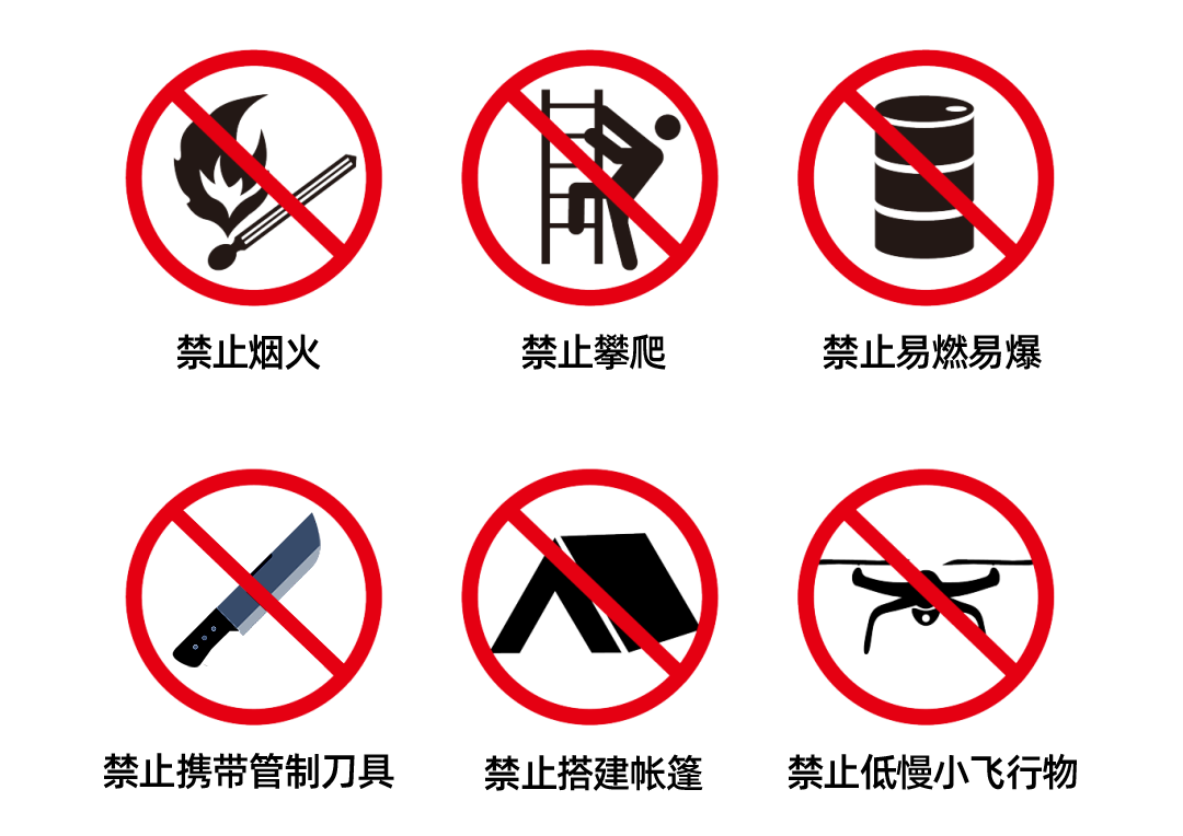 ③严禁携带易燃易爆、各类烟花爆竹、管制刀具等危险违禁物品进入观看区。