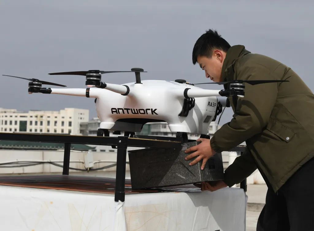 当天上午,一宗消毒器械被卫生院医护人员进行了包裹,被专门经过培训的工作人员装进了停放在卫生院的一架无人机底部。9时35分,卫生院工作人员通过微信将情况告知了青岛迅蚁工作人员。工作人员随后向杭州发出起飞请示,2分钟后,无人机载着这宗亟需消毒的医疗器械从卫生院飞往人民医院。