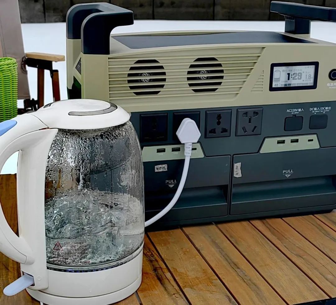 比如,它可以持续为多部手机、相机等充电,3600wh电容量可以冲个上百次都不成问题;它3000W大功率输出可以用来烧水,煮泡面,蒸米饭等都带的动,而且使用时间长,连续煮上几十碗泡面都没有问题。此外,用来带动电烤箱、电烤炉、电饭煲,用来加热一下家乡带来的特产也ok。