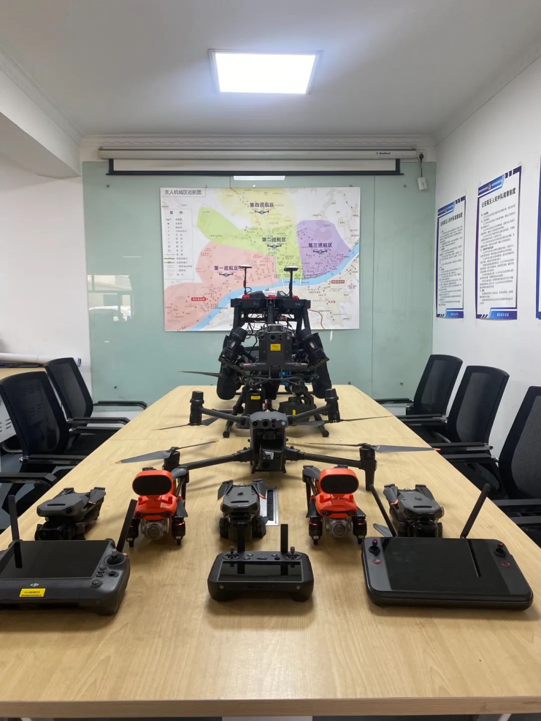 府谷公安加大经费投入,购买各型无人机10余架,购置多种无人机挂载设备、维护保养系统与训练教程。通过无人机搭载的高倍变焦镜头、警灯、喊话器、热红外、抛投架等装备,可以实现高空宏观监控,低空细节追踪,全方位立体的监控。配以实时图像回传功能,能够为警方现场指挥调度决策提供更好的依据。特别是飞行中队在夜间巡逻勤务时,开启红外热成像模式,可对目标进行追踪,引导地面巡逻警力科学布控、查控、管控,形成空地一体的立体打防管控体系。