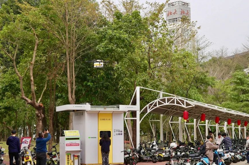 “我刚才体验了一下无人机配送,付款后不到11分钟就送到了,和系统提示的预计时间基本一致,送得很快也很准时。而且无人机取餐点就在宿舍楼下,以后不用再走很远去拿取外卖,感觉能够节省不少时间。”来自北大深研院的李萌说。