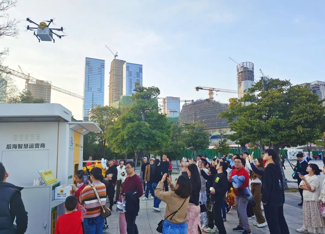 以景区场景为例,今年春节假日,深圳人才公园、世界之窗等景区里的无人机“一刻不停歇”,它们不仅为游客们带来了便捷与惊喜,也让商家们在这个假期里赚得更多。美团无人机数据显示,春节假期前5天,仅深圳人才公园的无人机配送订单量,较去年十一假期同期增长约80%,炸鸡、汉堡等多种商品销量环比增长超过5倍,很多商家超8成的外卖订单由无人机配送完成。