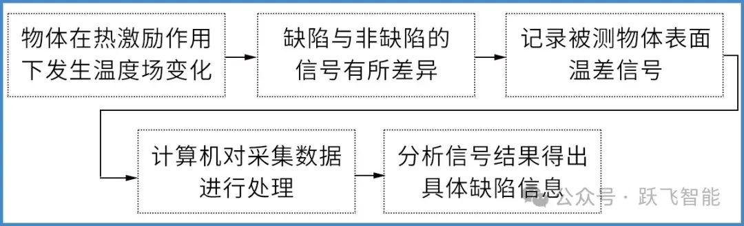 红外热成像技术是以红外辐射原理为基础,运用红外辐射测量技术和方法,测量热波在物体内部的传课情况,并通过热像仪品示出来,最后对采集的热图像进行处理,从而判断物体内部是否存在缺陷的一种方法,红外检测技术流程图如下: