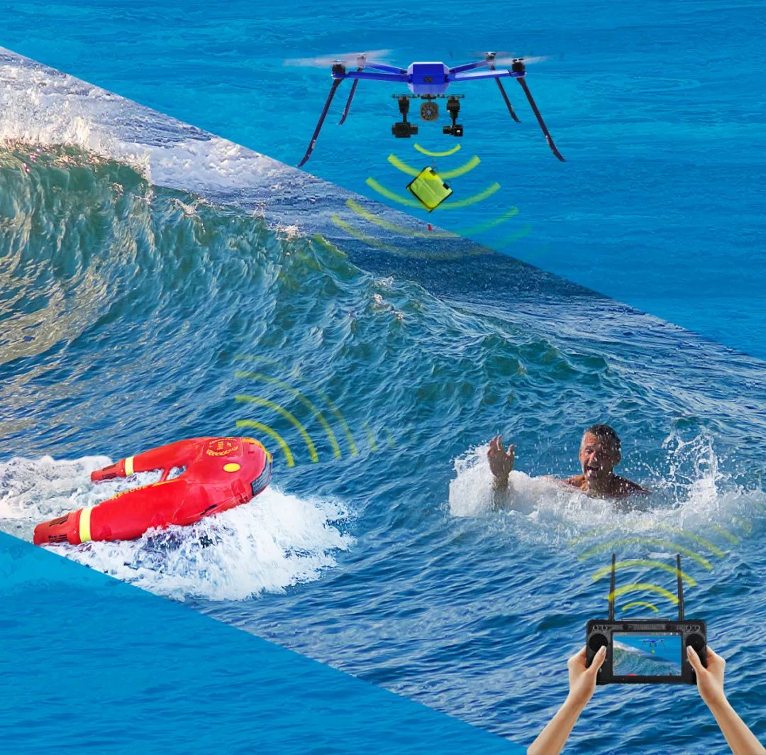 空海一体救援系统是智璟科技业内最为先进的系统,空中无人机和水面机器人协同救援,可发挥无人机视野大,速度高,可中继的特点,为水面机器人提供实时的救援引导,使救援范围和效率极大提升