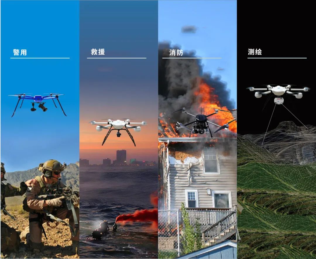 智璟科技工业⽆⼈机系统由⻜⾏器、地⾯站、挂载、遥控器以及配件组成,具有在复杂环境中⼯作、减少⼈员⻛险、获取⾼质量数据、⾃动化执⾏任务、提⾼⼯作效率等特点。通过挂载不同设备,⽆⼈机可为消防、应急、警⽤、测绘、军队等场景提供强⼤⽀持,是新⼀代⾼度智能化和⾃动化的⼯业⽆⼈机。