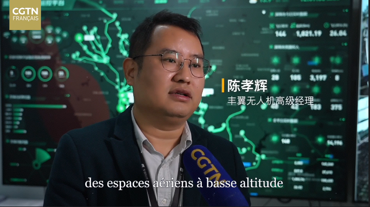 当飞机开始运货,飞行状况会在监控大屏上实时显示,工作人员也会密切关注着它的情况。看到屏幕上有众多无人机在忙碌地飞行,记者发出内心的疑问“天空中这么多飞机怎么能保证它有序地飞行,不会撞机呢?”