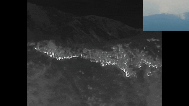 CW-15D起飞快速抵达山火现场,在空中对山火进行全域侦察,对4号和3号火场采用热红外、可见光进行火灾态势巡查、快照作业,完成了对火点的精准定位及目标的锁定,并将山火画面实时回传至指挥中心。