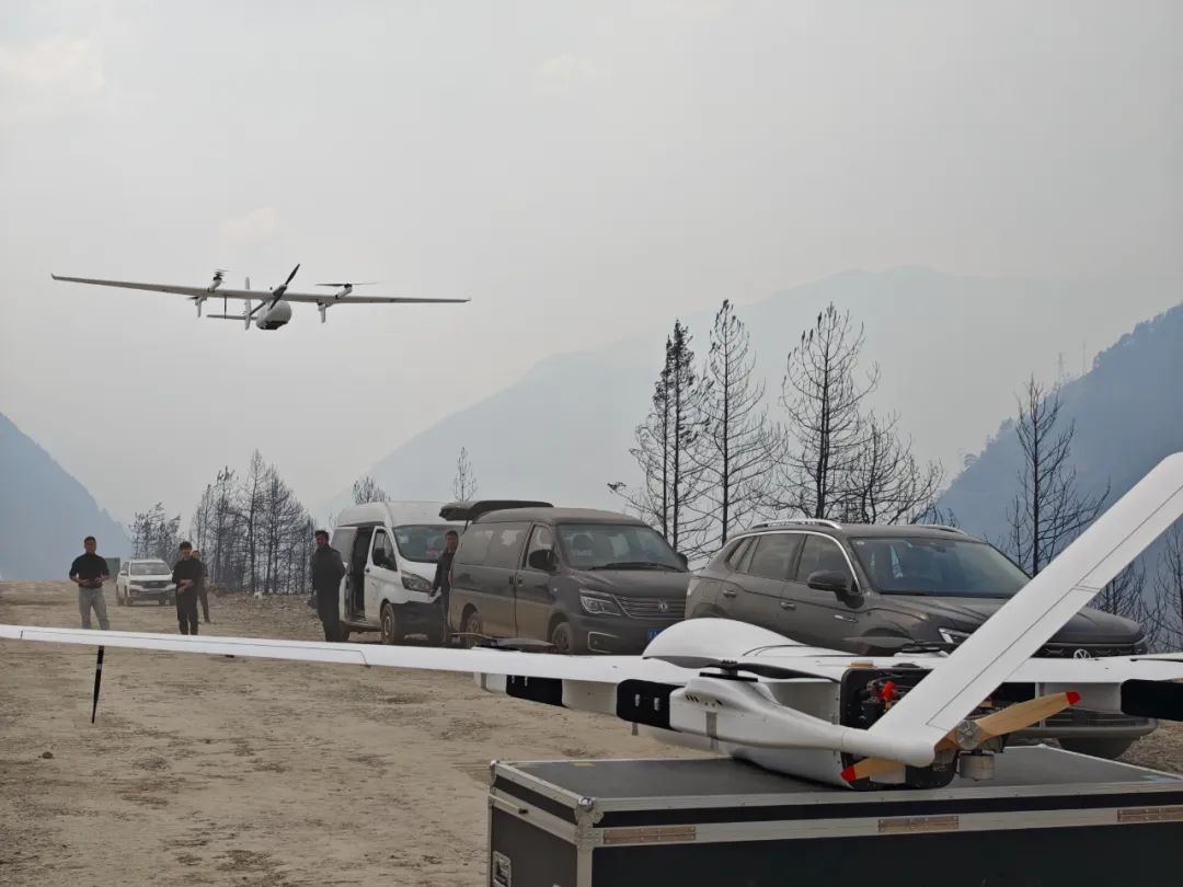 山火发生后,纵横股份第一时间成立应急救援小组,出动机组10人、指控车3辆,携带1架CW-100应急通信侦察无人机系统,2架CW-15D小型侦察无人机系统赶赴雅江现场,迅速配合现场指挥部门开展应急通信保障、火场侦察等任务。