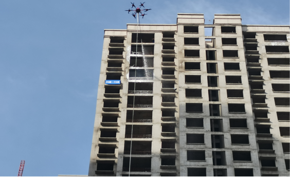 无人机自动化起降方舱搭载的TS-X12型系留无人机,基于75kg级系留飞行平台的水基灭火系统可实现有效灭火高度150米,水平喷射距离26米,流量120L/min。