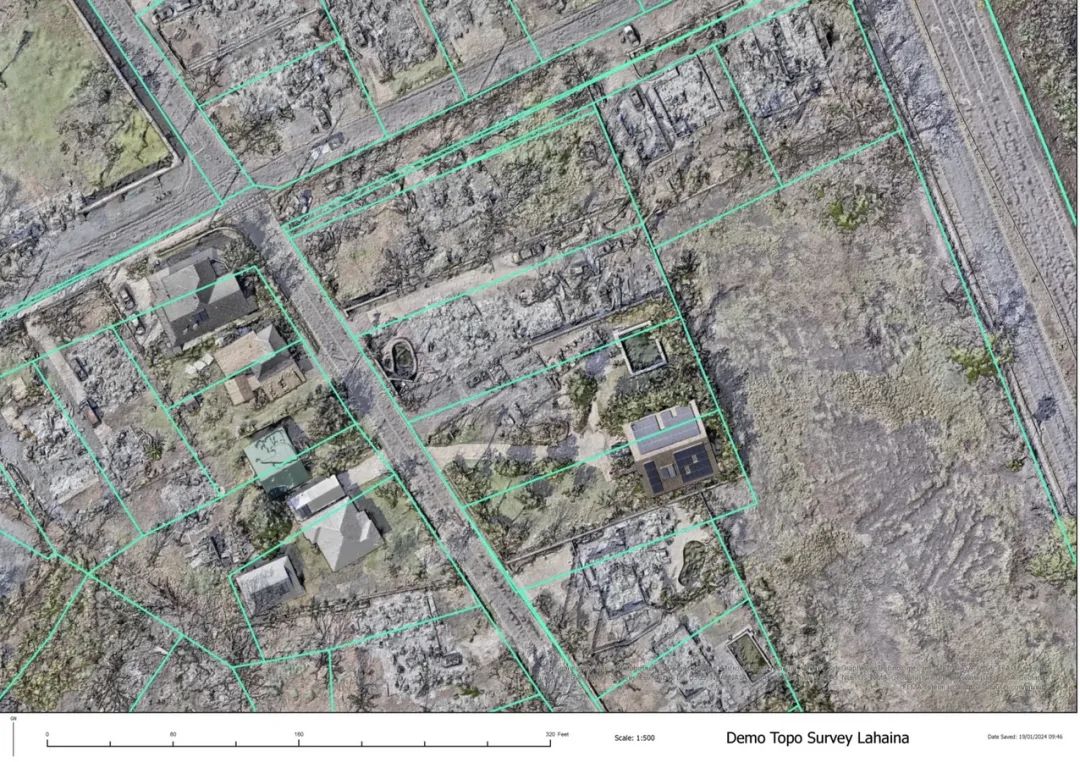 该项目于2023年启动,旨在为拉海纳绘制一份完整地图,区域覆盖面积约3000英亩(约合1214公顷/12平方公里),精度高达5毫米地面采样距离(GSD)。