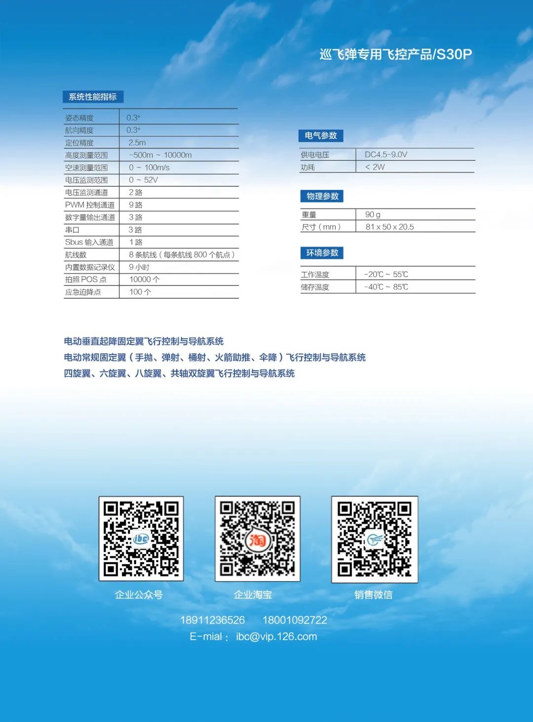 创衡控制推出巡飞弹专用飞行控制与导航系统,内置巡飞弹末制导算法和高精度、高动态微惯导,可进行无导引头的固定目标打击以及安装导引头的移动目标高精度打击,适用于电动或油动常规固定翼、垂直起降固定翼、多旋翼等布局飞行器。