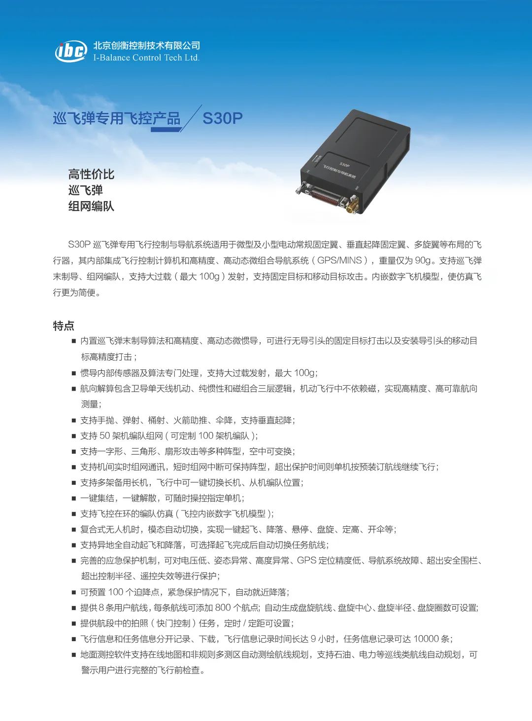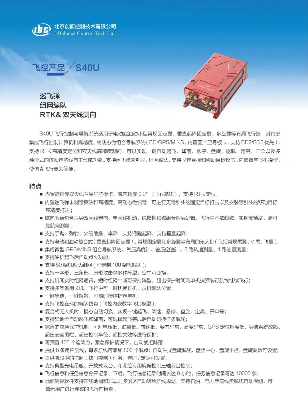 北京创衡控制技术有限公司定位并专注于工业级、军品级无人系统控制技术研发,核心团队源自北京航空航天大学,在飞行控制领域具有20年的技术积累,拥有多项无人机及飞行控制相关知识产权。主要业务包括控制系统集成、惯性导航、差分卫星导航等,其中无人机飞控系统包括常规固定翼、复合式、倾转旋翼、多旋翼、自转旋翼、飞艇等,基本实现无人机机型的全覆盖,全线产品均具有独立自主知识产权,可满足用户深度定制需求。