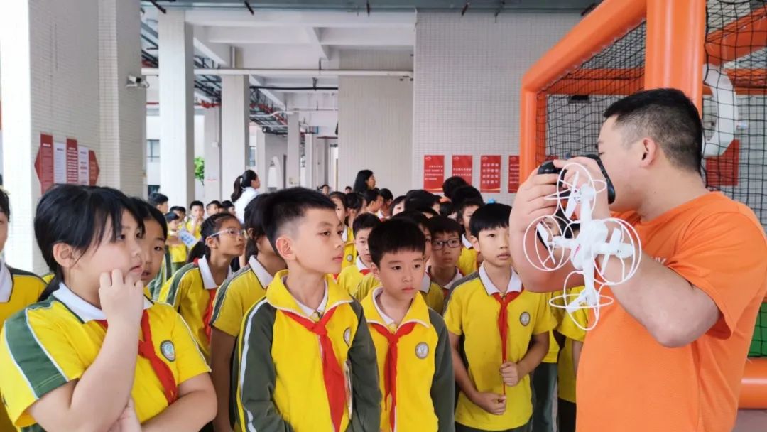 同样精彩纷呈,机身轻盈的航模在操作员的精准操控下,进行空中穿梭、翻滚、360度大回旋等各种高难度动作,让同学们近距离感受科技魅力!