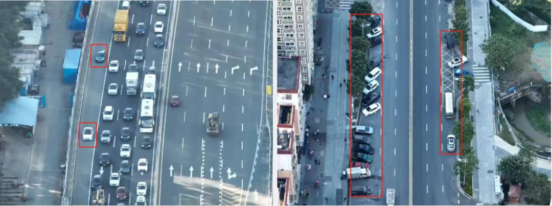 无人机在自动巡检过程中,通过AI智能模块可对诸如:堵车、违规停车、交通事故、路面有行人、路面固定物体、交通违法行为以及危化品车辆等进行实时智能识别,当识别出事件发生时,搭配喊话器负载以及实现录制好的喊话劝导、驱离录音。