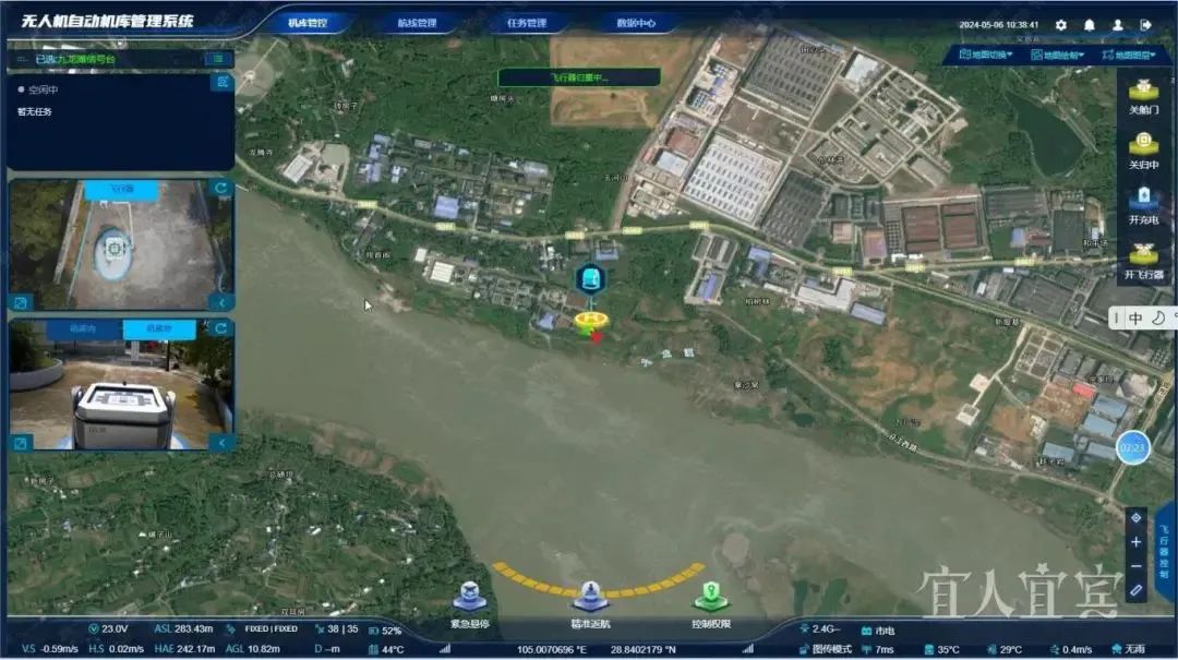 长江宜宾段91km干线航道属国家高等级III级航道,弯曲狭窄、滩多水浅,航道条件复杂。修建自动化无人机机库是协助无人机全流程作业的地面自动化设施,可以在无人干预的情况下,实现自主巡检、自动返航、自动补能以及智能采集和分析数据等操作。