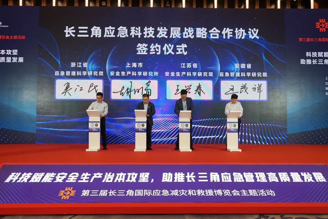 活动现场签署了“长三角应急科技发展战略合作协议”。三省一市应急(安全)科研院(所)、应急管理部国家安全科学与工程研究院等单位的专家学者及企业代表围绕“推动长三角应急科研协同发展与应用,提升区域新质生产力效能”等方面作主题演讲与交流。
