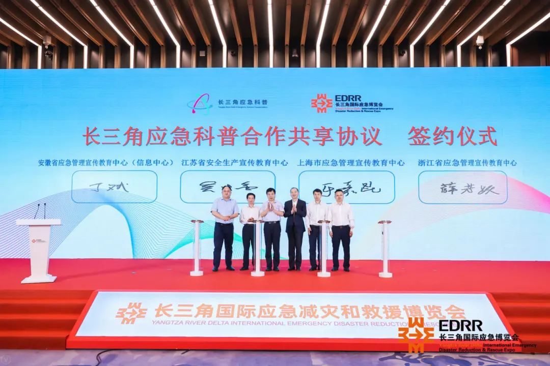 沪苏浙皖“三省一市”应急管理宣教中心主任共同签订了长三角应急科普共建共享协议,并联合发出关于大力开展长三角区域全民“应急科普”活动的倡议。主题发言和圆桌交流环节,围绕“以应急科普护航长三角一体化高质量发展”主题,应急管理部宣教中心原主任何国家等专家和嘉宾进行了精彩发言。活动现场,还开展了长三角应急科普大赛优秀选手交流展示及长三角应急科普大使的聘书授予仪式。