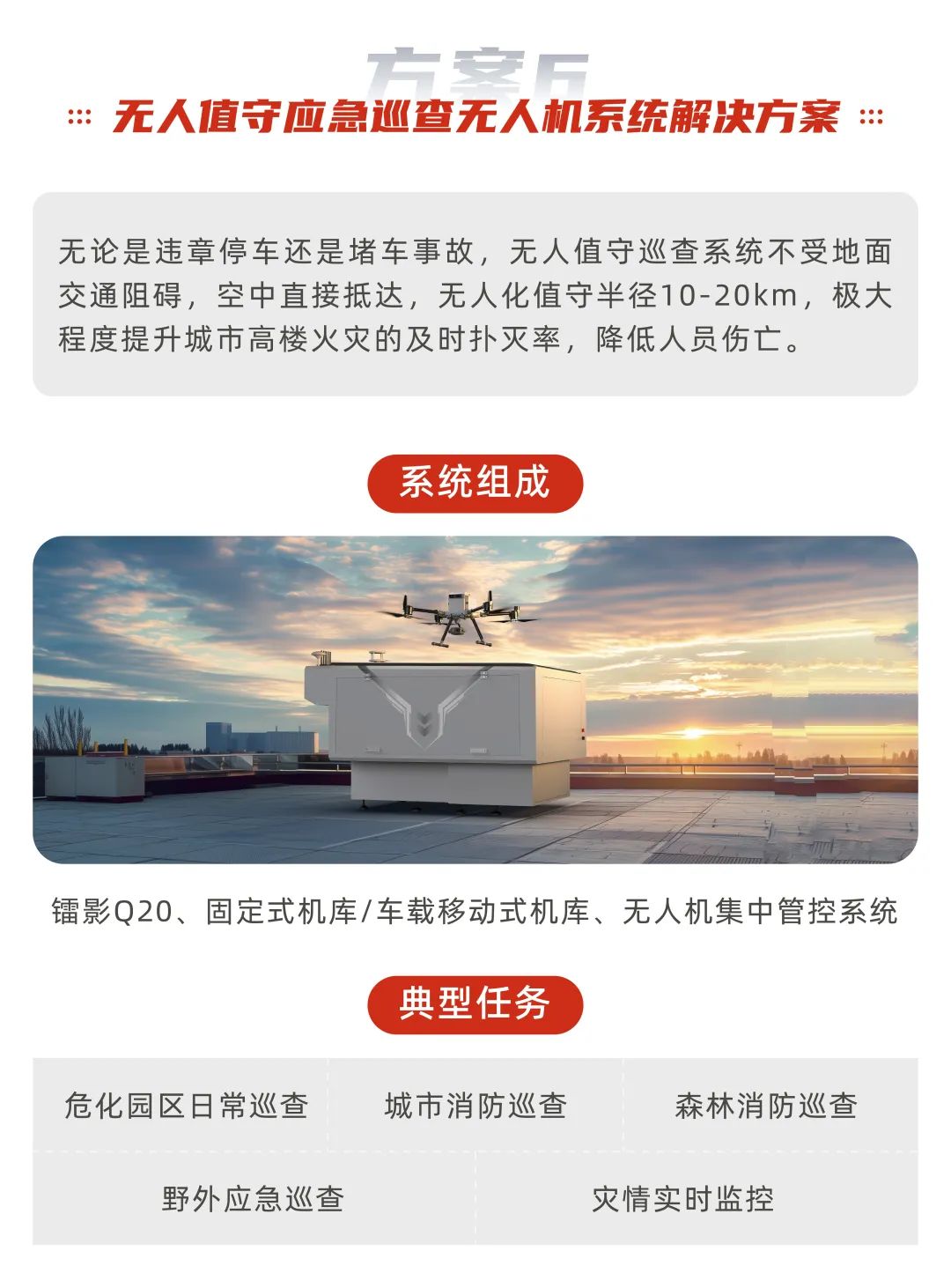 筑牢防线,护航前行。联合飞机以科技创新驱动形成「新质」应急力,立足大震巨灾、“三断”等极端情况,综合灾害特点,森林草原防灭火、防汛等复杂环境差异,应急救援实战急需等要素,形成可复制、可推广的典型案例,打造建设应用标杆,构筑低空应急安全防线,引领智慧应急新升级。