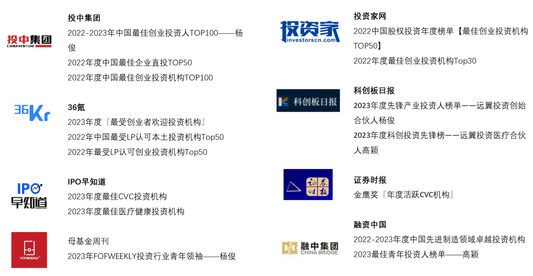 目前,远翼投资管理规模超50亿人民币,在企业中早期阶段,投资了包括途虎养车(C轮领投)、沛嘉医疗(9996.HK,C轮领投)、微创医疗机器人(2252.HK,A轮联合领投)、绿米联创(BC领投)、高仙机器人(B轮领投)、微电生理(688351.SH)、和其瑞医疗(B轮领投)、珞石机器人(C轮领投)、长风药业等一批中国新兴产业优质企业。