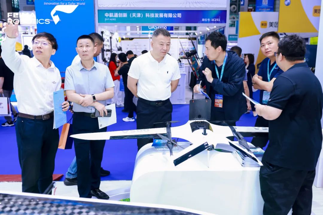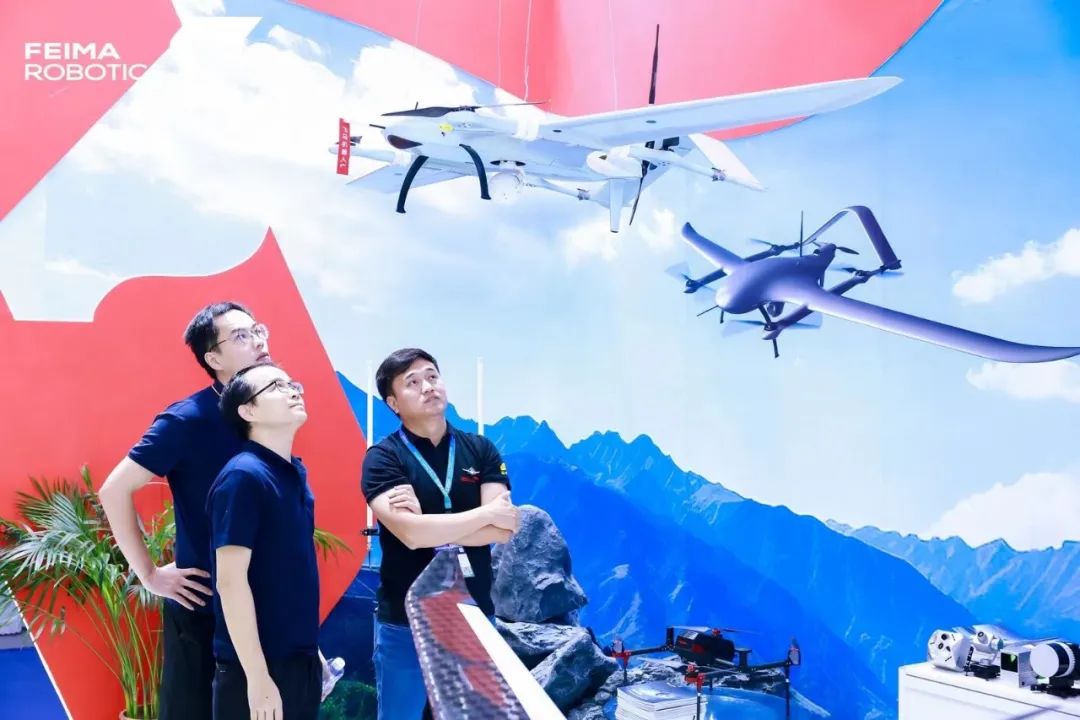 飞马机器人集中展示了为发展低空经济推出的两款新品——飞马智能应急/安防/巡检/航测系统V10R和V500R,两款产品专为应急、安防、巡检等行业应用量身打造。V10R起飞重量25kg,支持光电吊舱、航测模块、倾斜模块,标准结构一键切换,可满足多种应用场景,大幅提升产品复用价值。V500R起飞重量7.8kg,标配三光吊舱、背负式便携地面站、手持控制终端,主打“机动灵活、高效巡检、轻巧便捷”。飞马机器人技术人员还在现场实时演示了V500R的监控效果,通过手持控制终端可以实时查看现场监视画面,并可传送到手机、电脑等其他终端,充分展示出强大的空中监视能力。